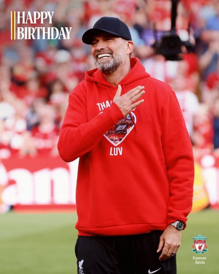功勋主帅!利物浦祝克洛普58岁生日快乐,执教红军9年斩获8冠 admin 2025年06月16日 17:30 84 0 直播吧6月16日讯 今天是克洛普的58岁生日,老东家利物浦为他送上祝福。利物浦官方社媒晒出为克洛普制作的生日海报,配文:“生日快乐,尤尔根!”克洛普曾担任美因茨、多特、利物浦主帅,2015年到2024年执教利物浦期间带队赢得1次英超冠军、1次足总杯冠军、2次联赛杯冠军、1次社区盾杯冠军、1次欧冠冠军、1次欧超杯冠军、1次世俱杯冠军。 标签: #克洛普 #利物浦 #欧冠 #功勋 #欧冠冠军 #生日 #足总杯 #社区盾杯 #尤尔根 #冠军 #祝克洛普